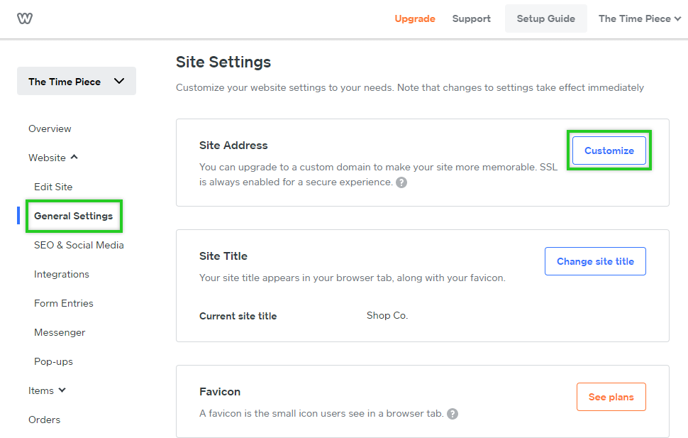 - In your Weebly account, click Website > General Settings in the navigation on the left.
