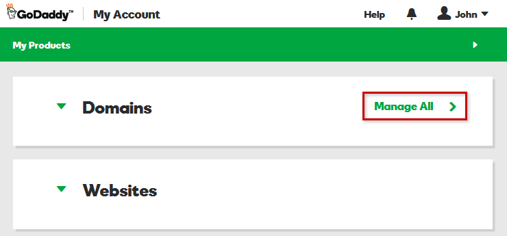 - Click Manage All next to Domains.