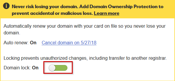 Disabling the Domain Transfer Lock with GoDaddy