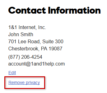 The change will take effect within the next few minutes. You have now successfully disabled private registration for your domain.