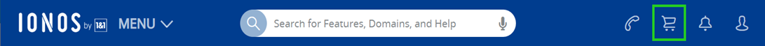 - Click on the shopping cart in the upper right corner of the title bar to switch to the IONOS Shop.