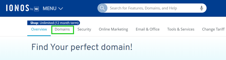 - Click on the Domains tab in the IONOS Shop.
