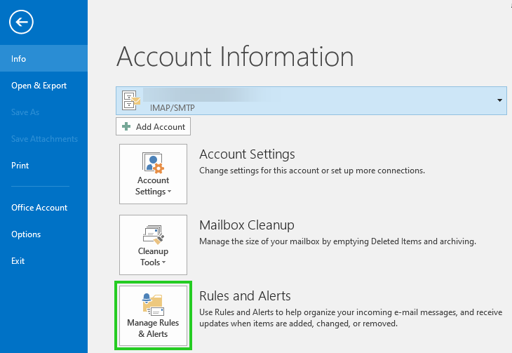 Click File > Manage Rules and Alerts.