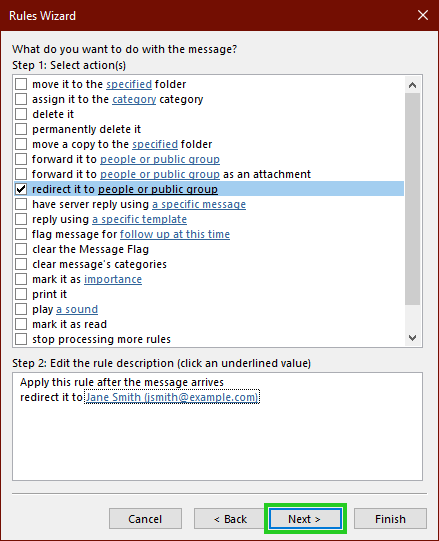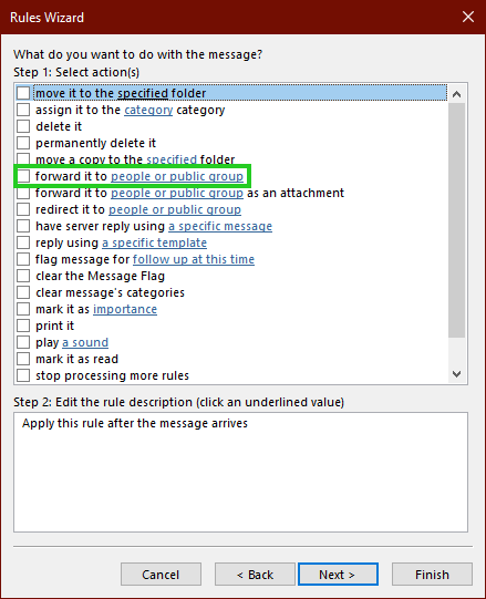 You can also set up the corresponding forwarding rules directly in Outlook for Microsoft 365, Outlook 2016, or Outlook 2019: