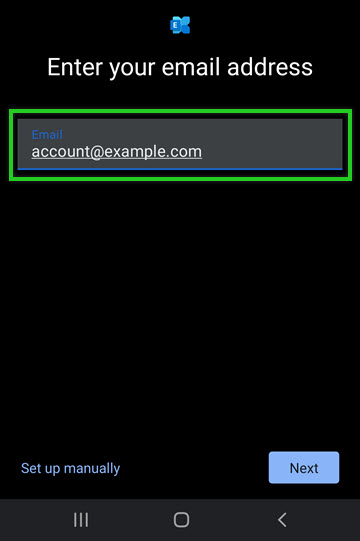 If the automatic Microsoft Exchange account setup fails, set up the account manually in Android. To do this, follow the steps below: