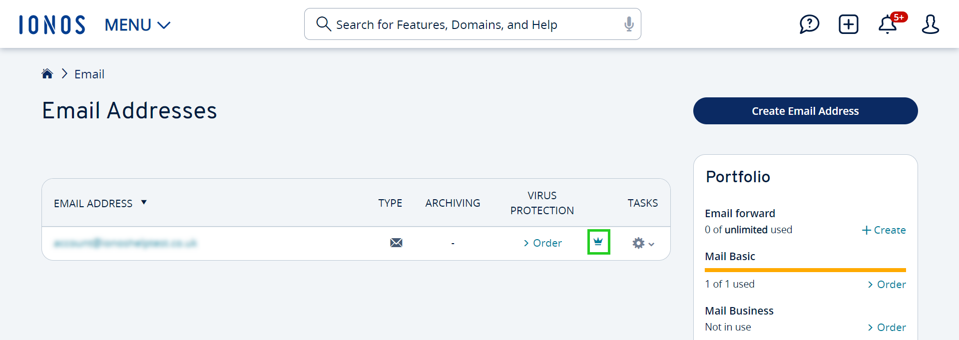 Upgrading Mail Basic to Mail Business in the IONOS account