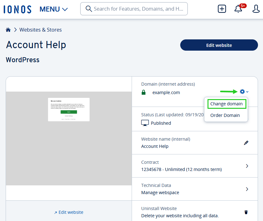In this article, we'll show you how to disconnect your domain from a Click & Build website. After disconnecting, you will be able to change the usage type or DNS settings of your domain again.