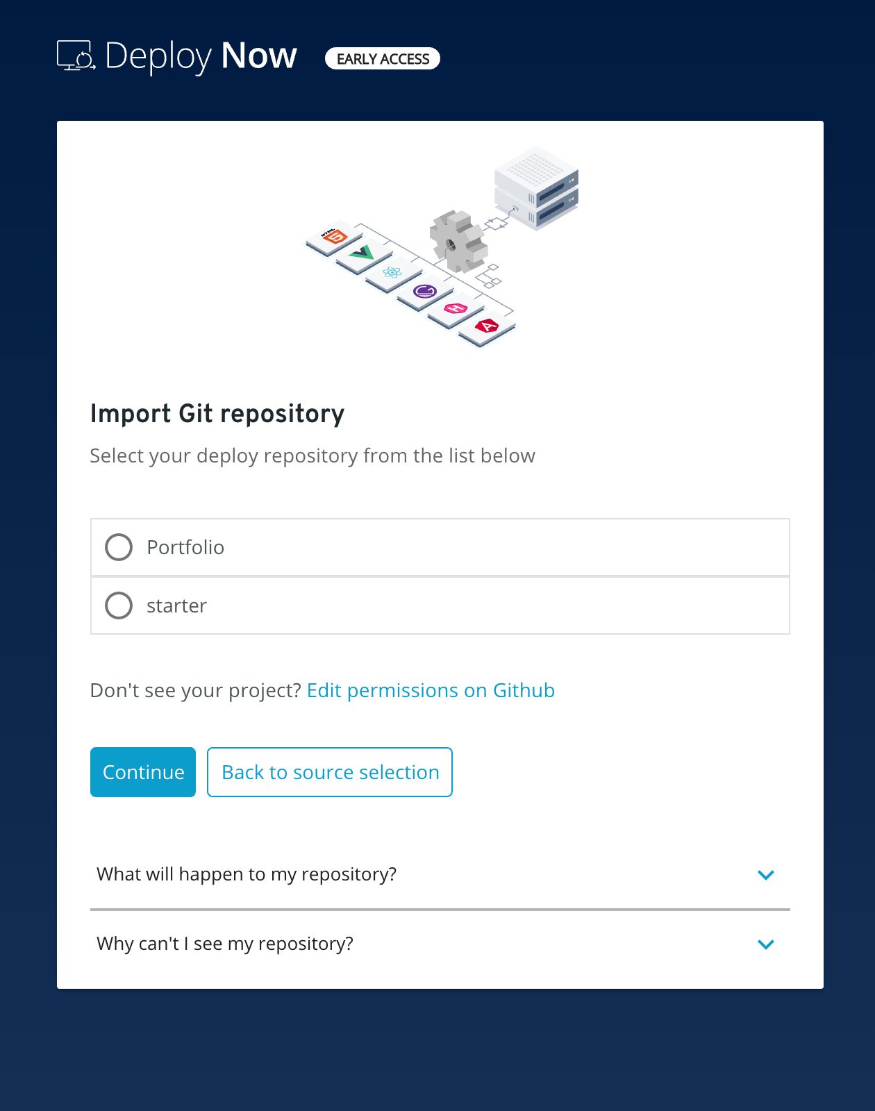 You can then choose from a list of repositories from your GitHub account.