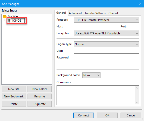 For IONOS Windows hosting packages, please reference Saving Your FTPS Connection Data in WinSCP.