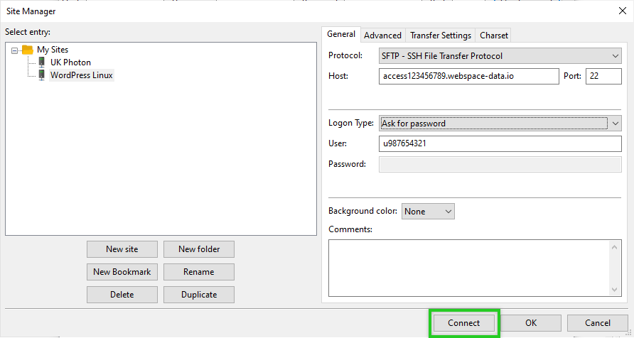 Entering Your Access Details in FileZilla