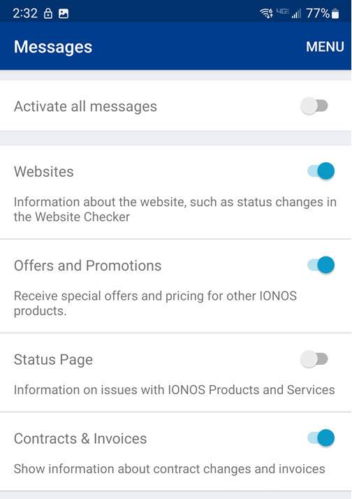 To manage notifications in the IONOS Mobile App, simply follow the steps below: