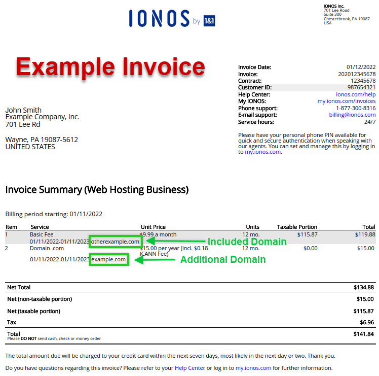 In this article, we'll explain how you can tell on your IONOS invoices whether a domain is included in your basic monthly price (base fee) or charged separately as an additional domain.