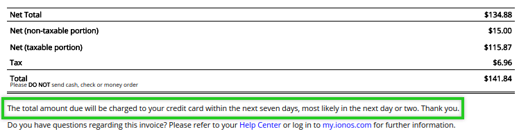Please take note of your selected payment method that is referenced on the invoice. In this example, it is a credit/debit card.