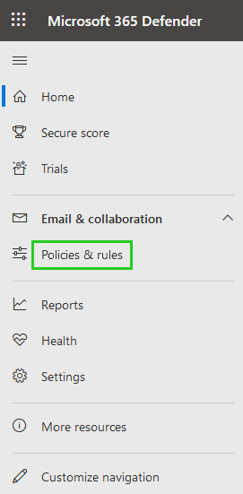 Click Policies and rules in the navigation bar on the left.