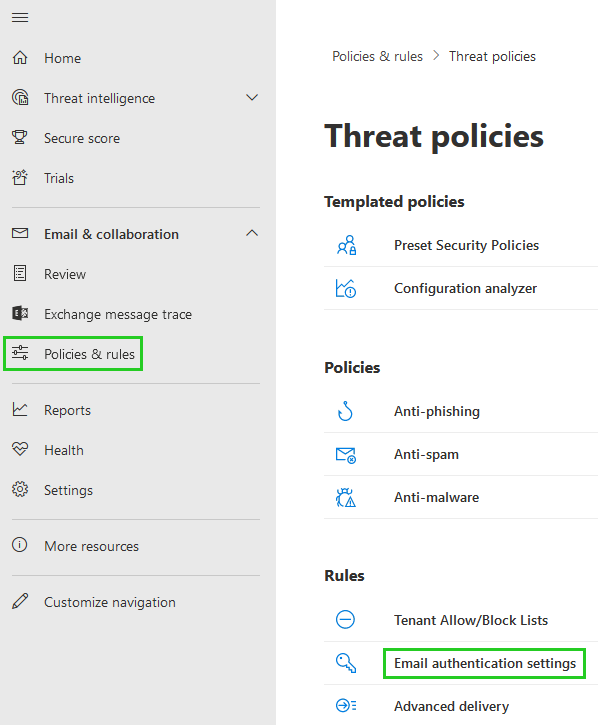 To activate DKIM, return to the Microsoft 365 Defender portal.