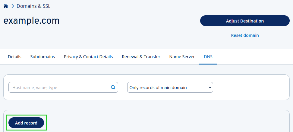 Configuring CNAME Records in the IONOS Account