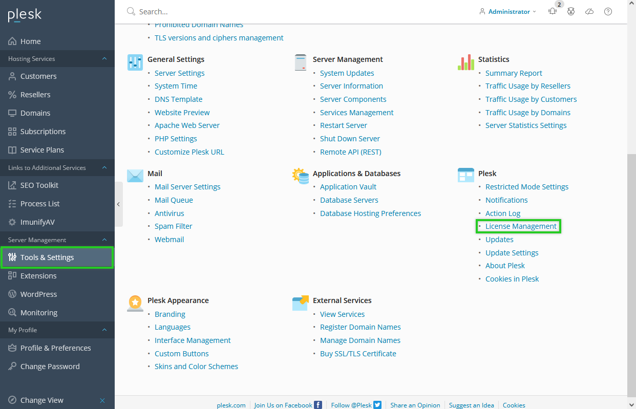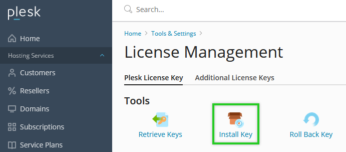 To change the activation code in Plesk Obsidian, follow the steps below.