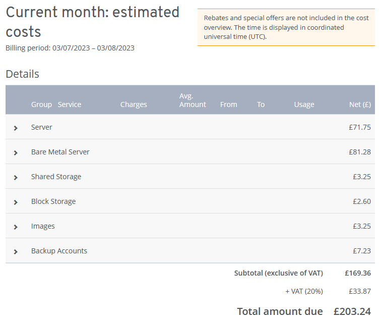 In this article, we'll show you which information is listed in the Costs > Interactive Invoice section of the IONOS Cloud Panel.