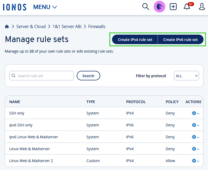 In this article, we'll show you how to create a new rule set for your server's IONOS hardware firewall.