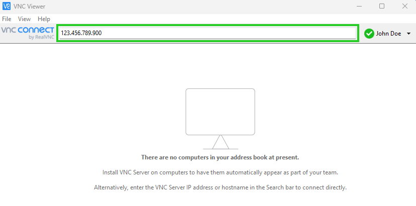 In the VNC Server Address field, enter or browse for the IP address of your server and press Enter.