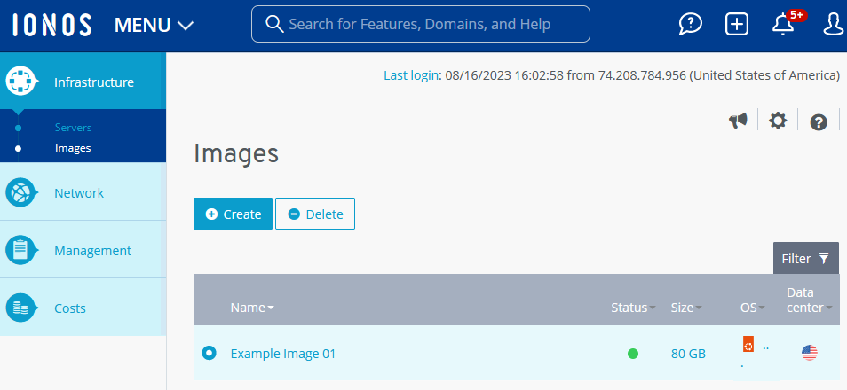 Data center: IONOS data center where the image can be used.