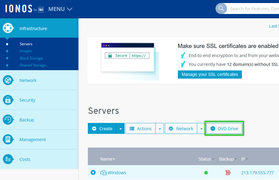You are in the Cloud Panel in the Infrastructure > Servers section.