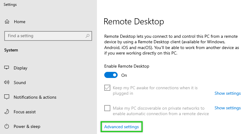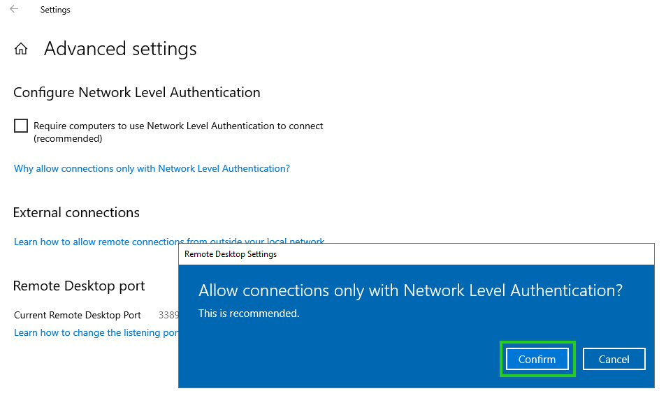 Enable the Require computers to use Network Level Authentication to connect (recommended) option.