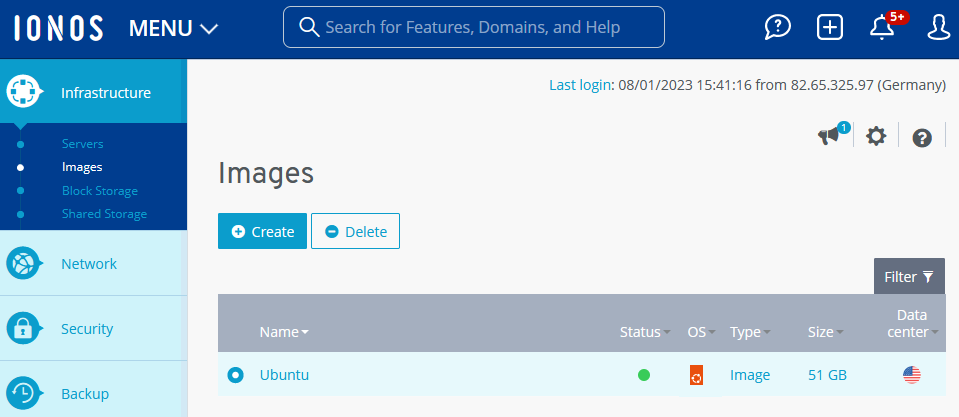 Data center: IONOS data center where the image can be used.