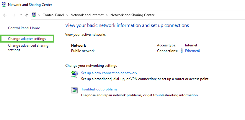 Click on Network and Internet > Network and Sharing Centre > Change adapter settings.