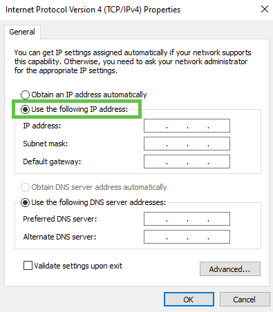 In the Subnet mask field: enter the subnet mask you have noted down.