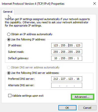 In the Preferred DNS server field: enter the DNS server you have noted down.