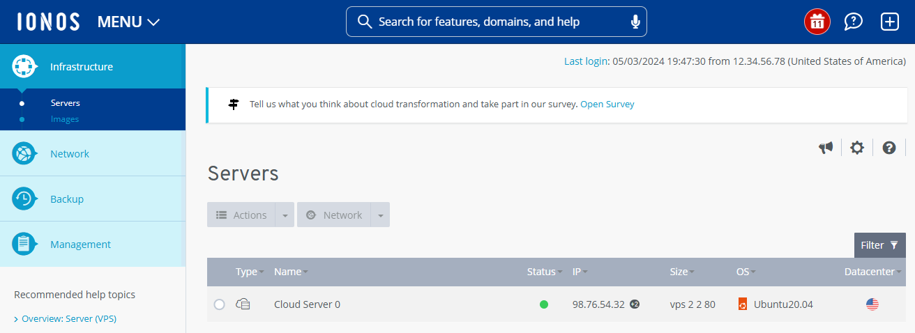 For Linux VPS, Windows VPS, and migrated Cloud Servers which are managed in the Cloud Panel