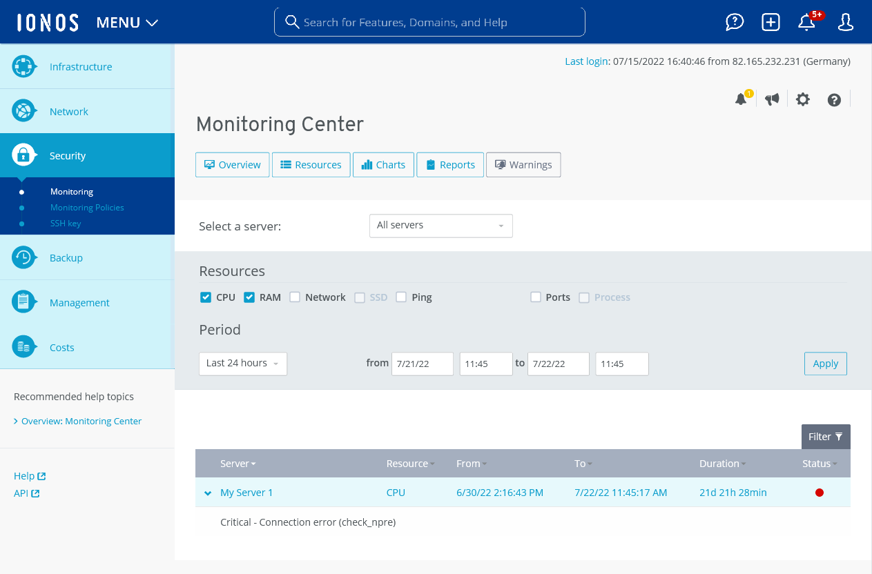 Regular monitoring of your servers is generally recommended in order to detect performance bottlenecks and possible problems at an early stage and to quickly notice a server failure or the failure of individual components or applications. This also applies to certain types of cyber attacks. If you are attacked, a fast response is essential to stop the attack and minimize the damage caused.