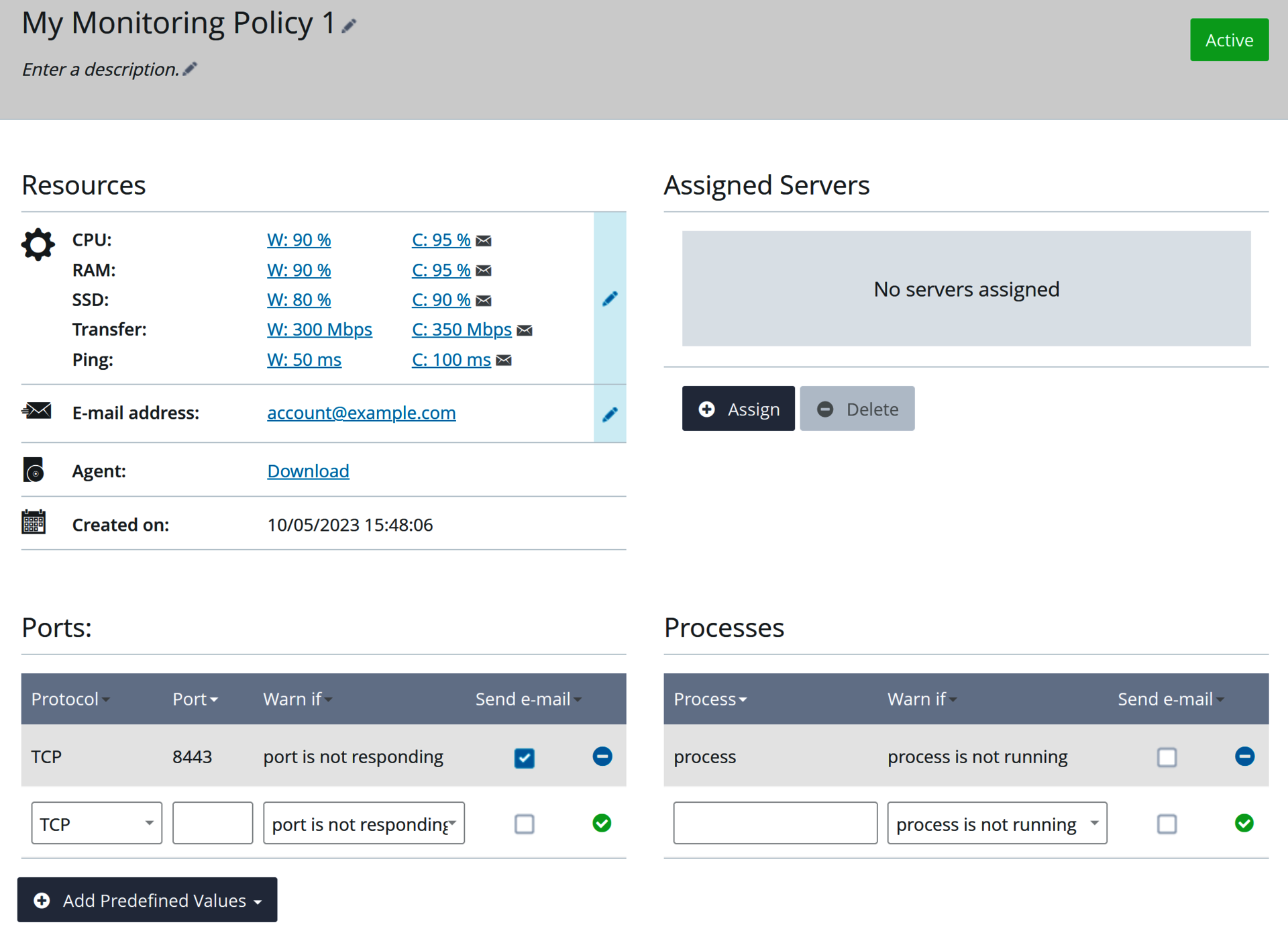 Assigned servers: These are the servers that are monitored by the monitoring policy.