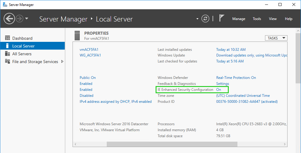 In the Properties area, next to IE Enhanced Security Configuration for IE, click ON.