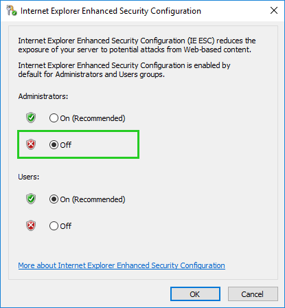 Disabling the Internet Explorer Security Configuration