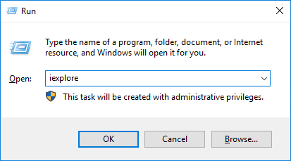Type the word iexplore and press Enter. Internet Explorer opens.