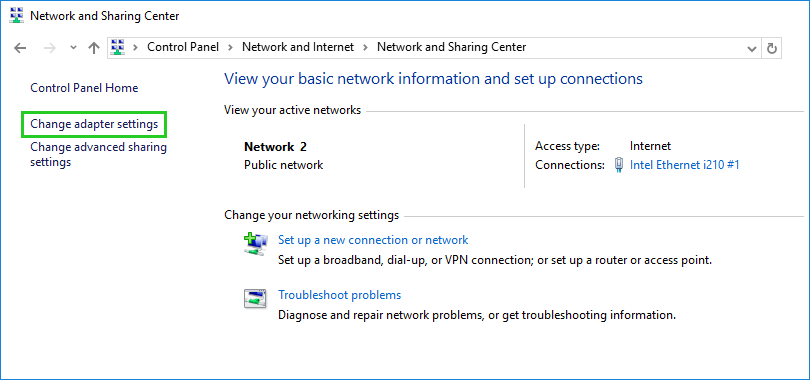 Click Change Adapter Settings.