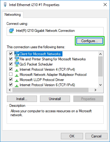 Right-click the network connection and select Properties.