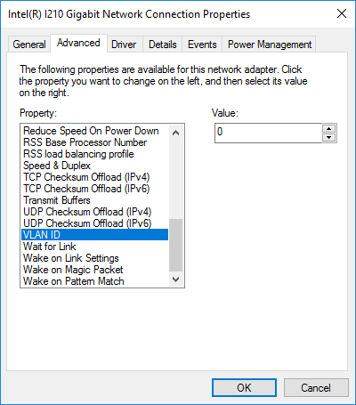 Make sure that the value 0 is entered. Otherwise, the network card cannot be configured correctly if you want to create multiple VLANs or private networks.