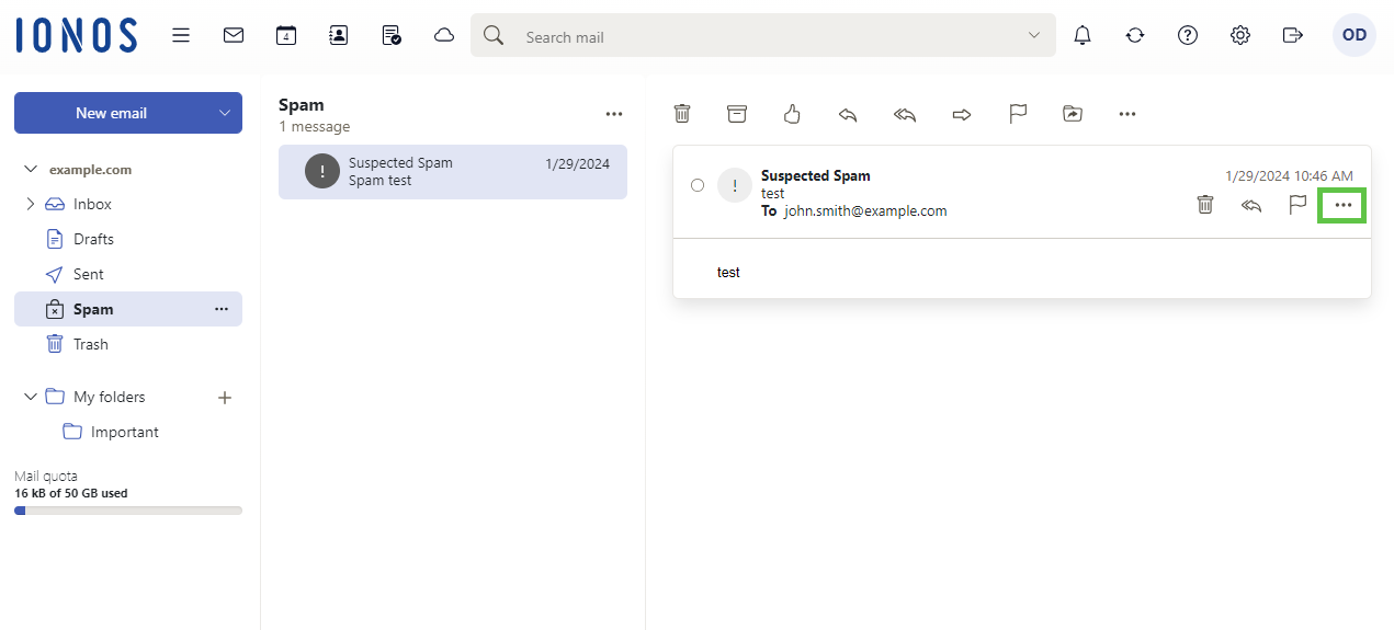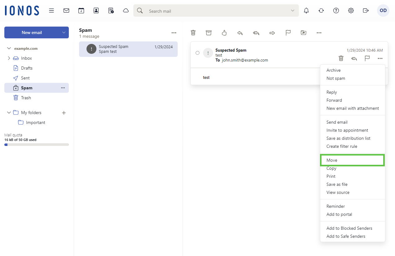 You can open emails that have been classified as spam by Spam Protection in the Spam folder. To move them, do the following: